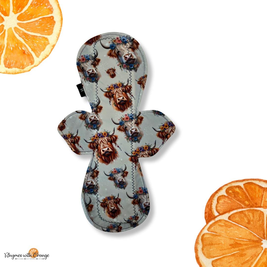 Highland Cow Reusable Cloth Pad: 12 inch Heavy Absorbency Sanitary Napkin