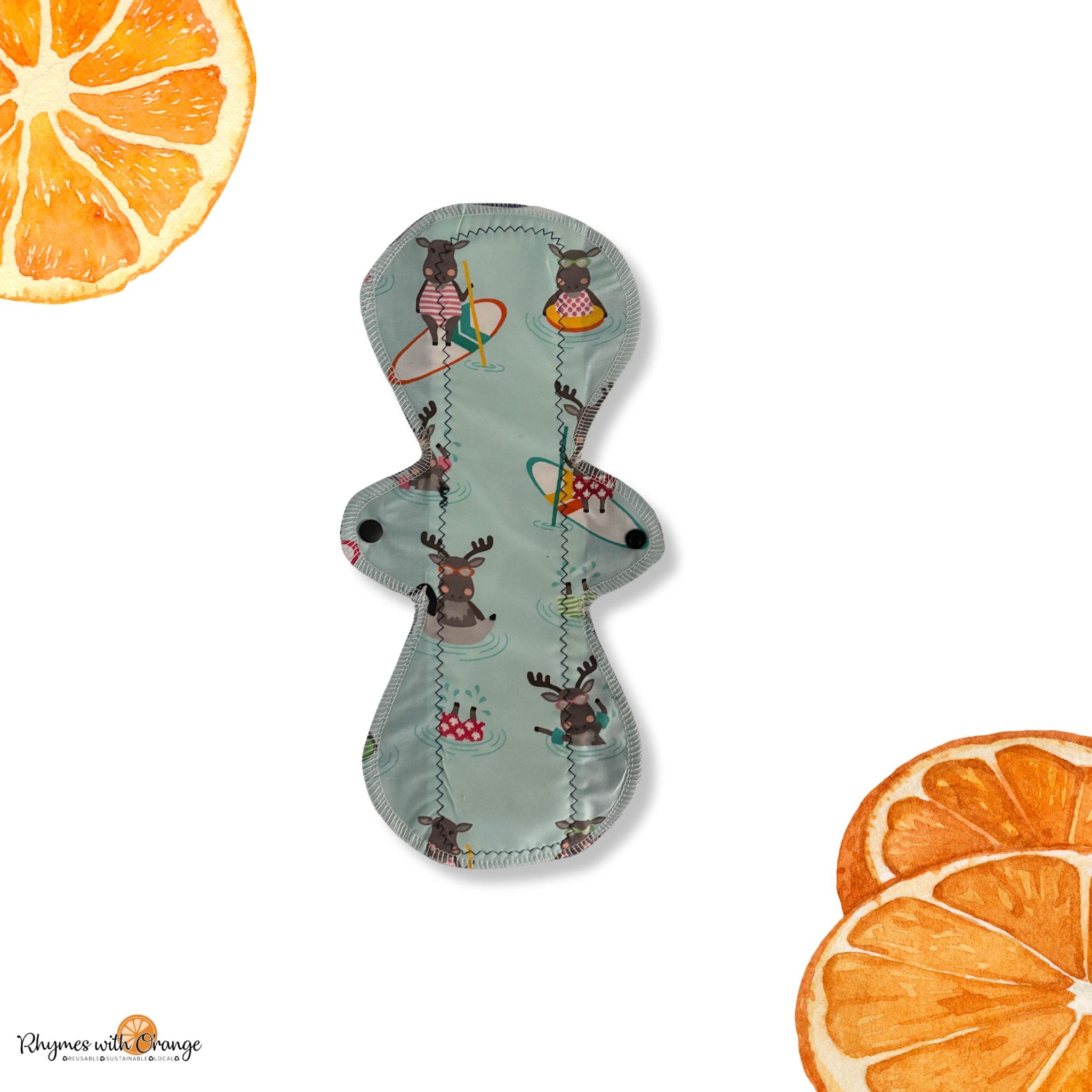 16 inch Reusable Menstrual Pads with animals surfing Design- heavy absorbency reusable cotton pads, sanitary napkins, cloth period pad,