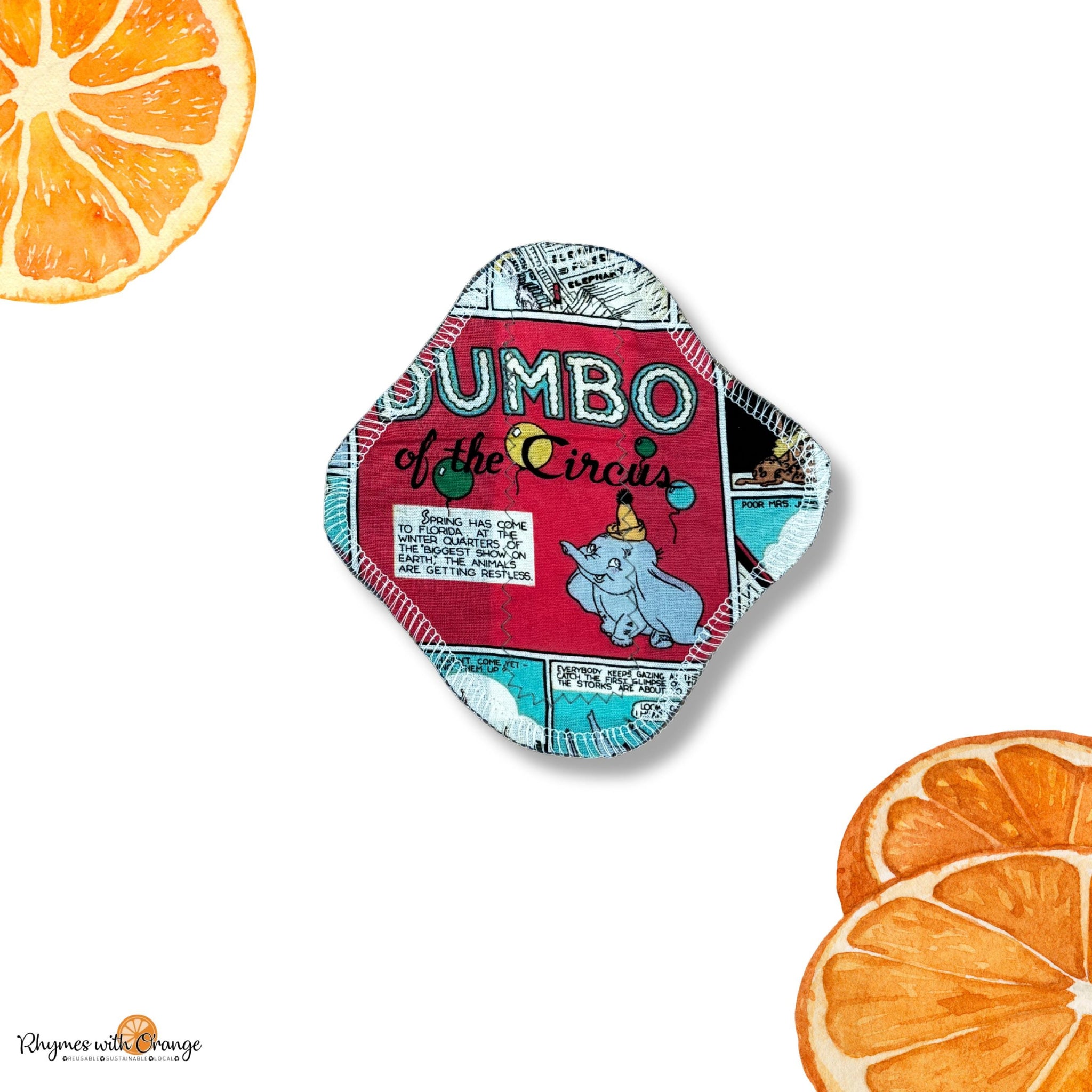 6 Inch Reusable Cloth Pad: Organic Bamboo, moderate Absorbency, Elephant cartoon