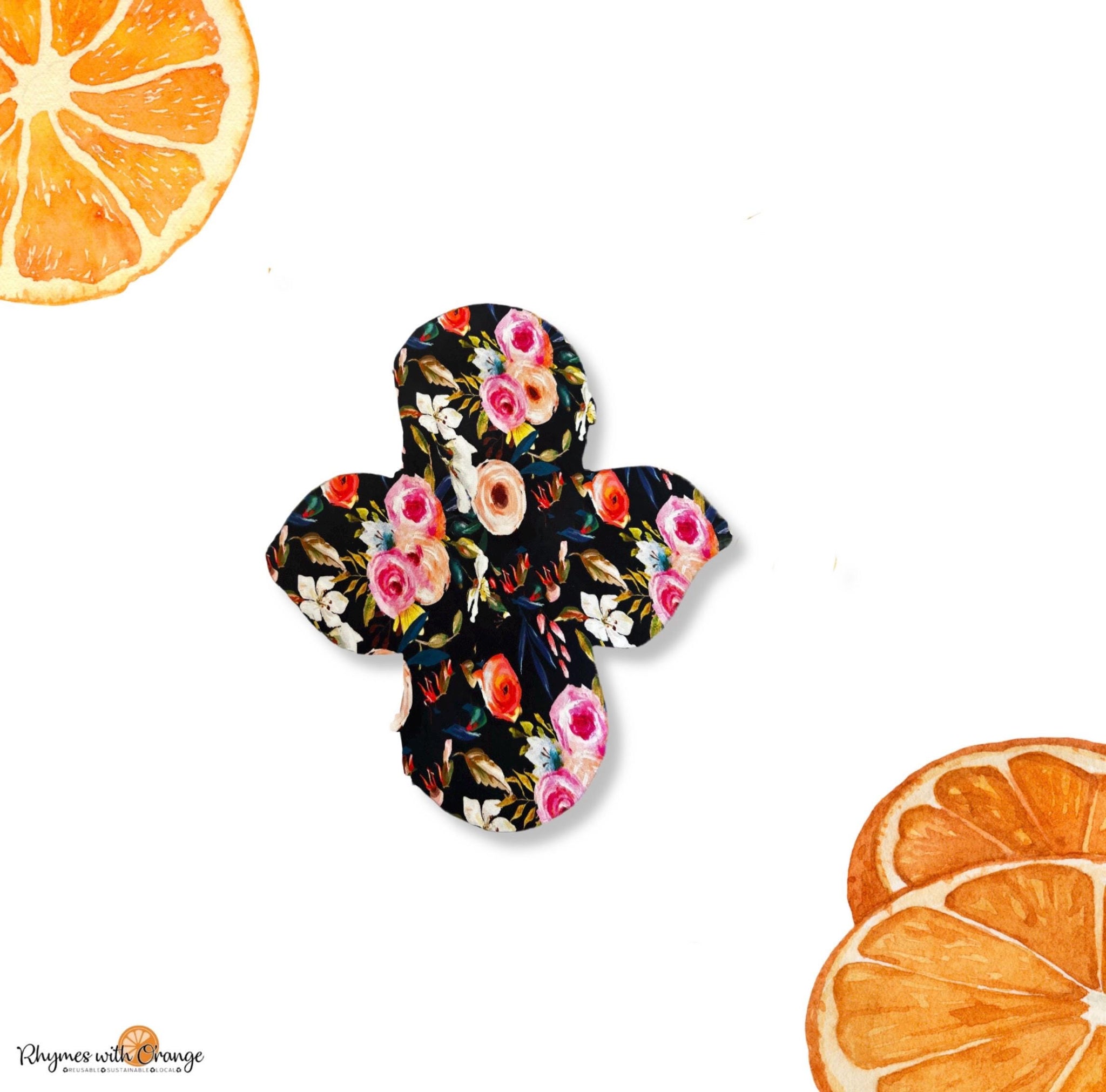 8 inch heavy liner absorbency reusable cotton pads, sanitary napkins, reusable pads, peony on black, teenager gift, women’s gift