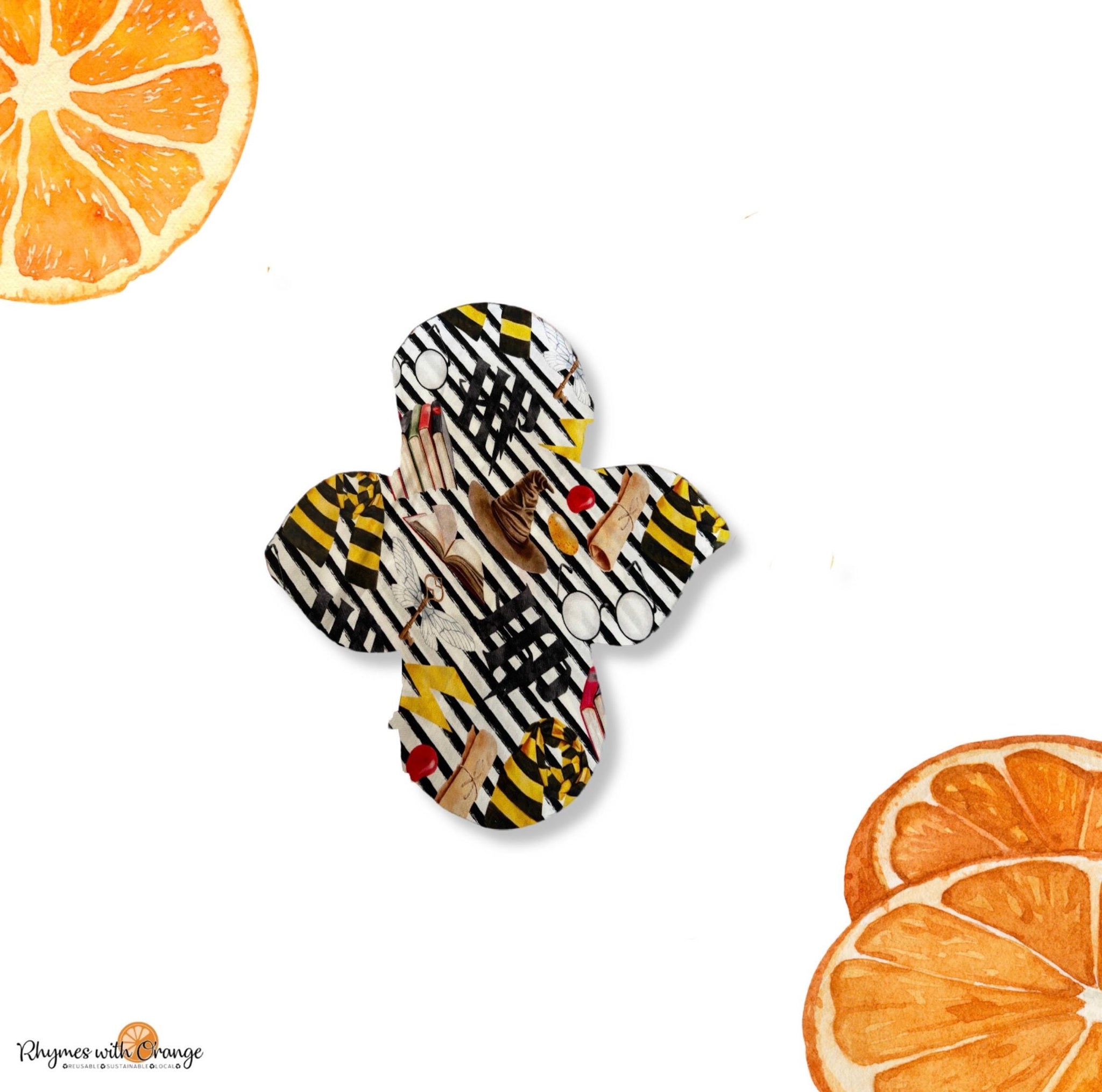 8 Inch Reusable Cloth Pad: Cotton Topper, Bamboo Core, Wizards Print