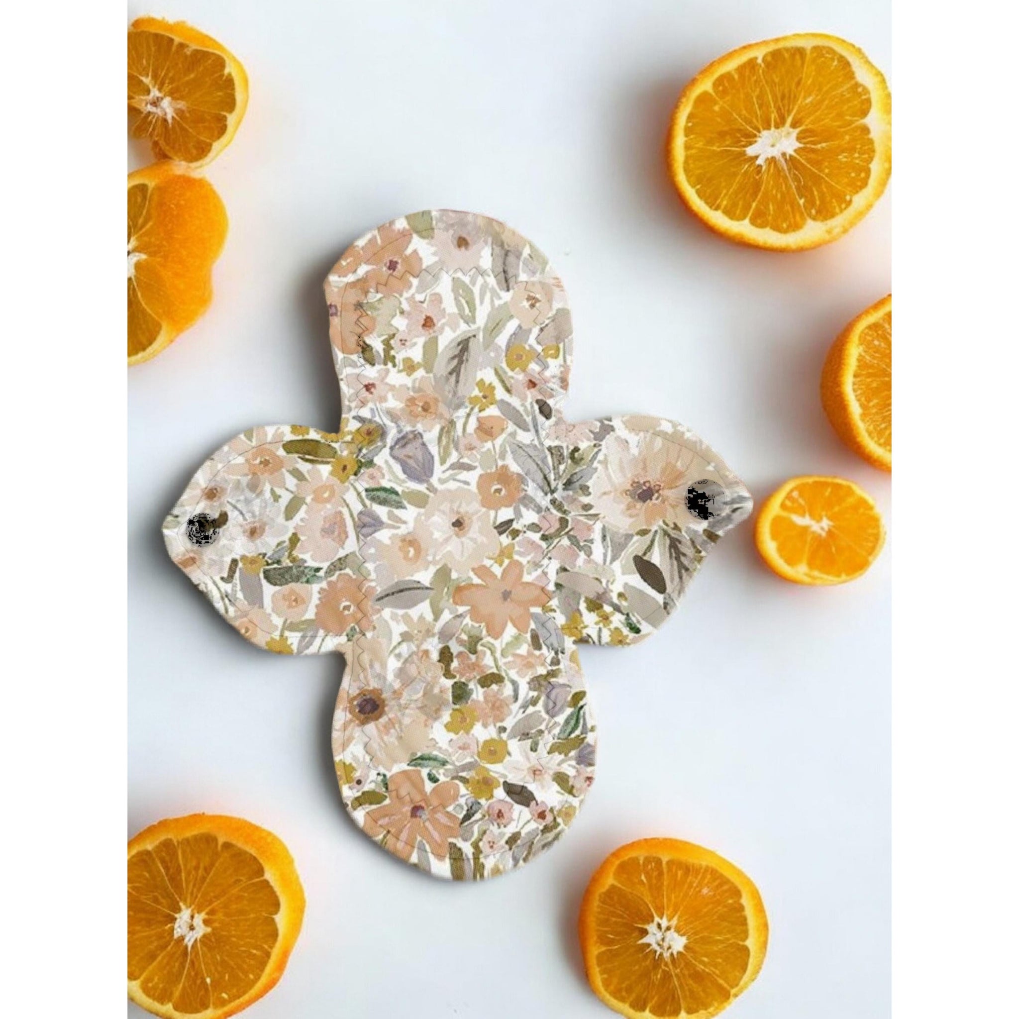Floral Reusable Cotton Cloth Pad: Moderate Absorbency, Bamboo Core, 8 inch