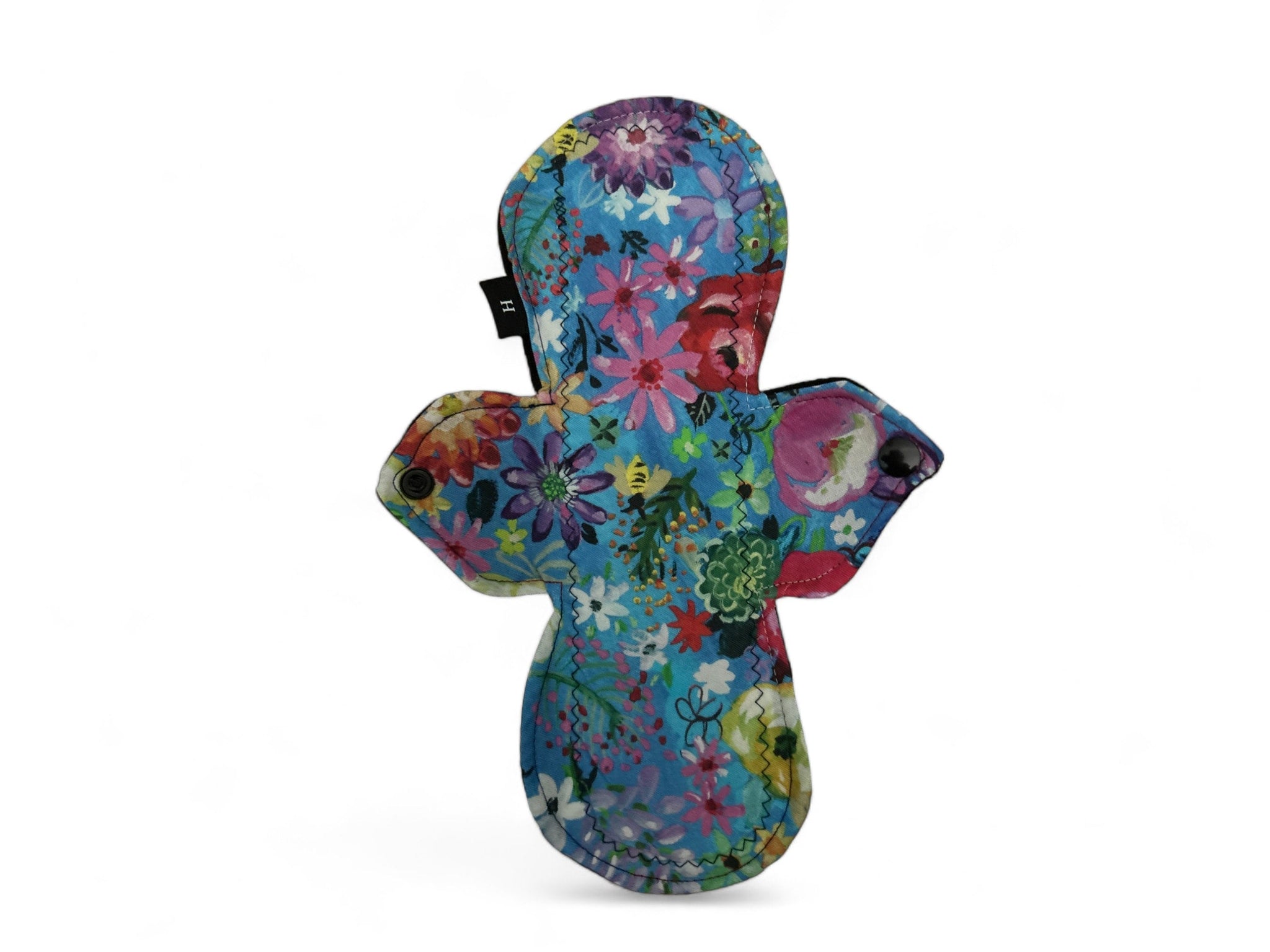 8 Inch Reusable Cloth Pad: Spring Blue Floral, Heavy Absorbency