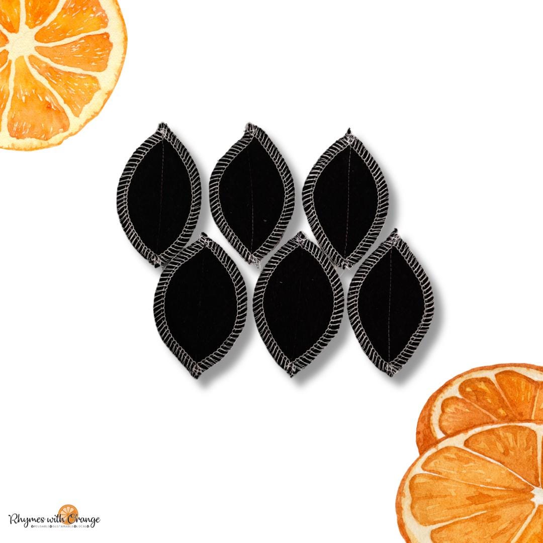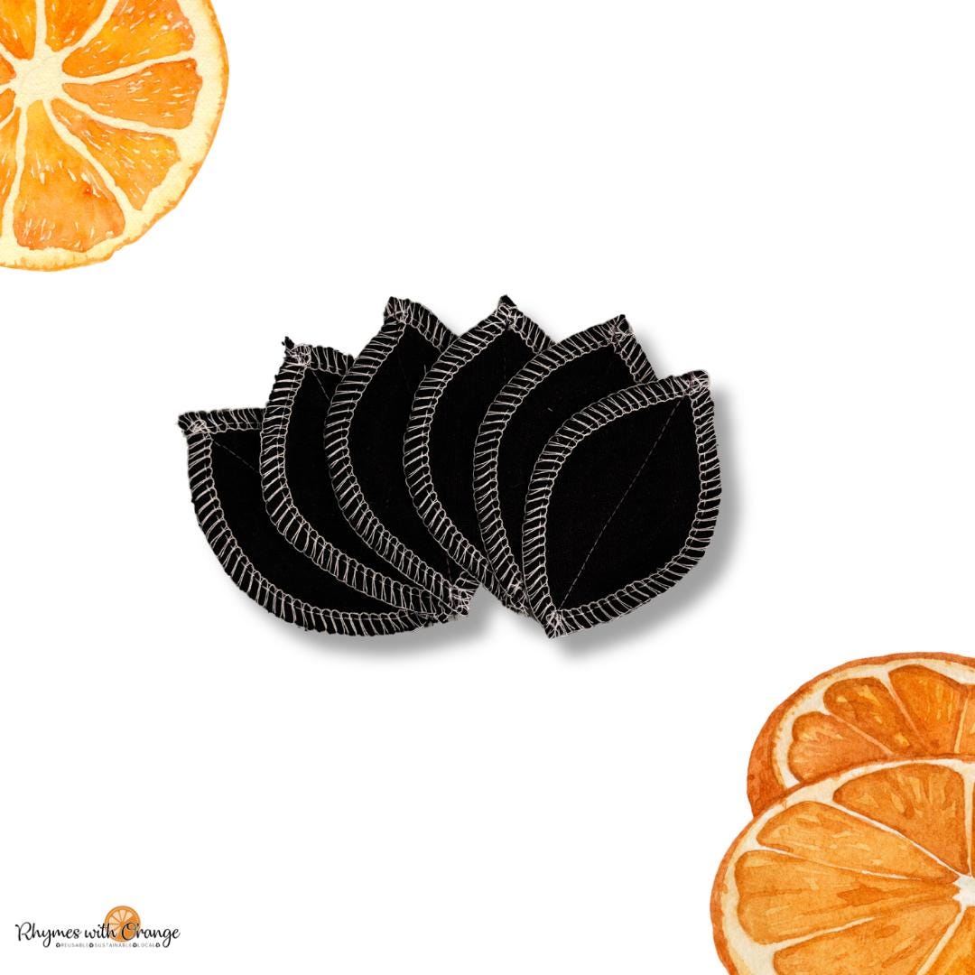 Set of 6, 4” x 2.5” petal shaped interlabial pads in organic bamboo fleece.